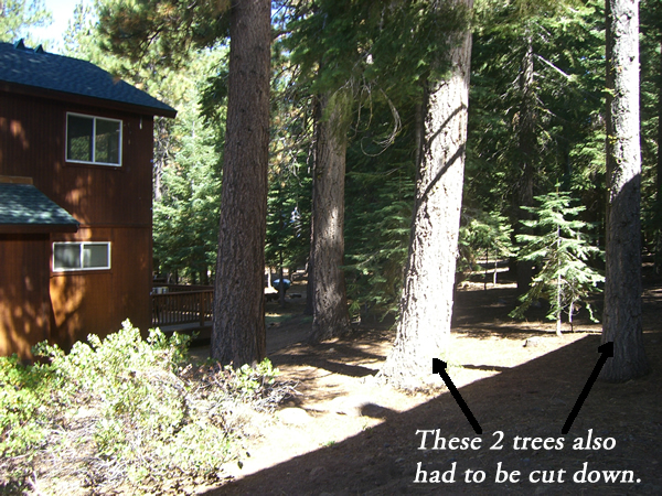 As I said the paperwork started in February. By mid May the final plans were submitted to the Town of Truckee for permits. To our dismay, they said it would be at least 3 weeks before the earliest approval. With the July 4th holiday looming our start date of June 22 was not looking good. Along with Truckee we had to have site plans and all exterior changes approved by the Tahoe Donner Homeowners association before any construction or exterior work could start. Luckily we could start the Tahoe Donner process concurrently. We had two meetings with them in June and met all their requirements and were just waiting for the final Truckee approval. Truckee came back before July 4th and asked for some minor changes. We worked with the Engineer to have the plans modified and quickly re-submitted. Luckily the revised plans were approved on Friday, July 5th late in the day and the day after a holiday. We were quite impressed with that response! July 10th was the final approval meeting for Tahoe Donner and with approved plans and permits in hand; they also approved the project. The official start date was July 11th. Well, if you know Bob, he was counting on that approval and had already scheduled the tree cutter for 8 am on July 11th. and work began.