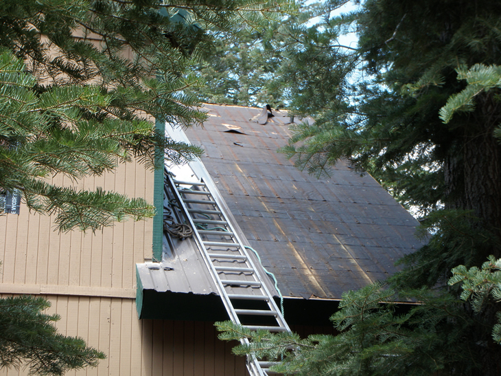 We used to say roof tear-off when Bob was in the roofing business but with a large metal roof like ours it is really a removal process. We are using Sierra Sage Roofing for the new roof. They came on July 24th to remove the old roof. They have a crew that comes in and unscrews all the screws holding the roof and they lower each section down. Then they bring a flat bed trailer in to take the metal to recycling. We hadn’t thought about this so much we just knew we wanted a metal roof so that the snow would slide off and not accumulate like it does on a composition roof. Turns out the recycling is an added benefit. The crew also was careful to put each screw into a pile so that cleanup after the removal was minimal! Certainly not the clean off mess and dumpster I remember from taking off roofs in the past!