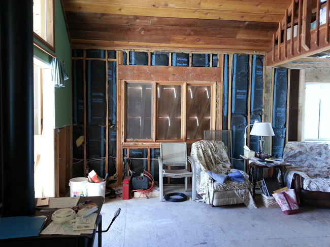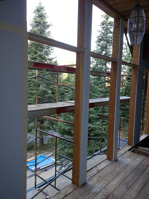 The large pane windows on the 3rd floor loft were replaced a few weeks ago. Except for one window near the tree branch that could not be replaced until the electrical panel was done. So for a week or so we had this great open air view through our bedroom door!