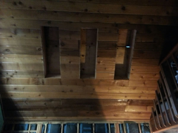 Well, the scaffolding went back on the deck while Larry and Bob completed boxing the rafters Monday thru Wednesday (Sep. 16-18). On Friday afternoon, the Truckee Rents came and picked up all the scaffolding. Bob said that was a major milestone for him. He was very tired of being the person to take it down and move it so much! It also means that our part of the exterior work is almost done! Yeah!!