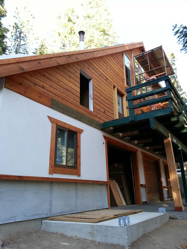 By September 13th all of the exterior stucco was finished with the final color coat. It is off-white and helps bring the Swiss feel to the house. Below the wood ledge, will be granite rocks but for now it just looks gray in the picture below.