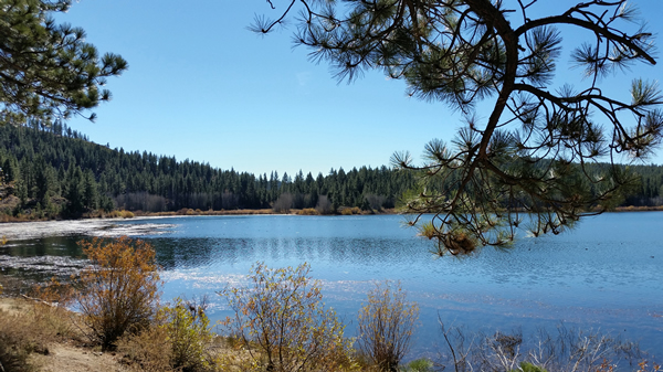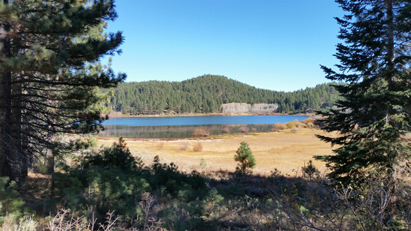 Our first view of the lake, with bare Aspin trees across the lake