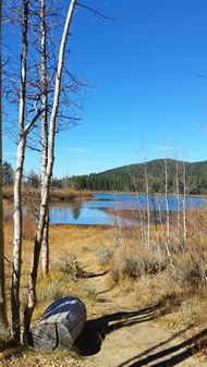 We soon realized that we were too late for the orange and yellow leaves of the Aspen trees, but the lake and other trees and bushes still provided beautiful scenery.